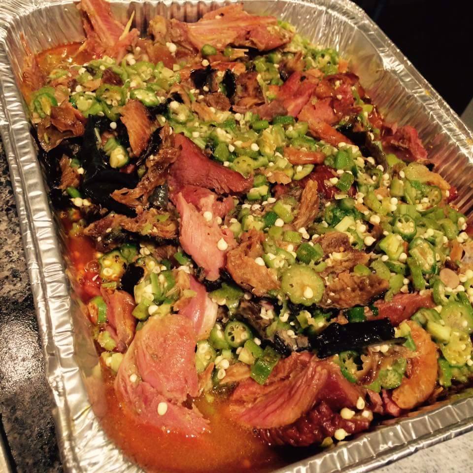 Okra soup cooked with meat of different types. A healthy diet of vegetables and proteins